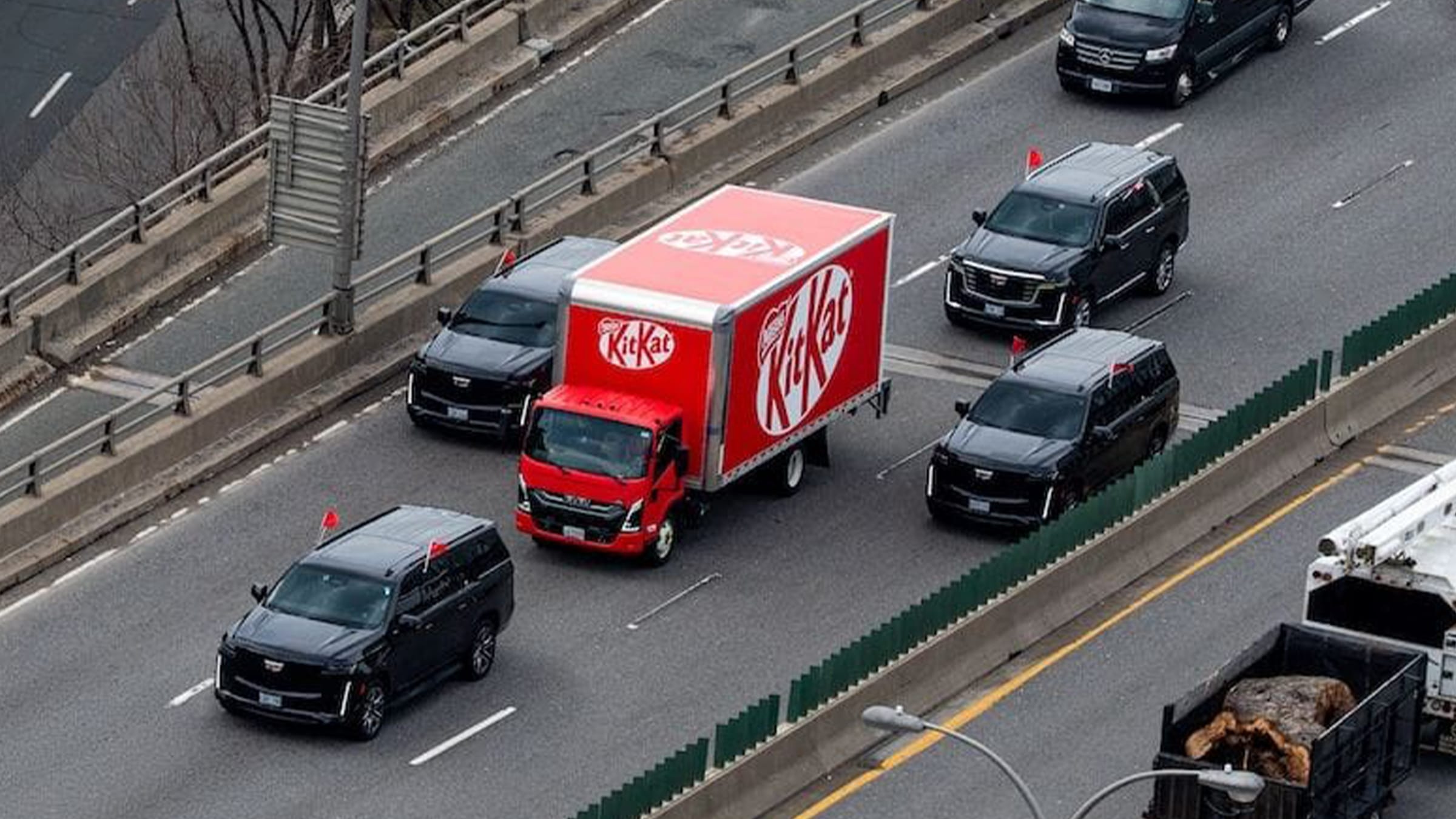 Au Canada, des camions KitKat ont ainsi été aperçus dans les rues de Toronto escortés par des SUV noirs, comme s’il s’agissait d’un transport à très haute valeur stratégique. Une mise en scène volontairement exagérée, pensée pour faire sourire, mais surtout pour capitaliser sur une actualité déjà virale à l’approche de Pâques.