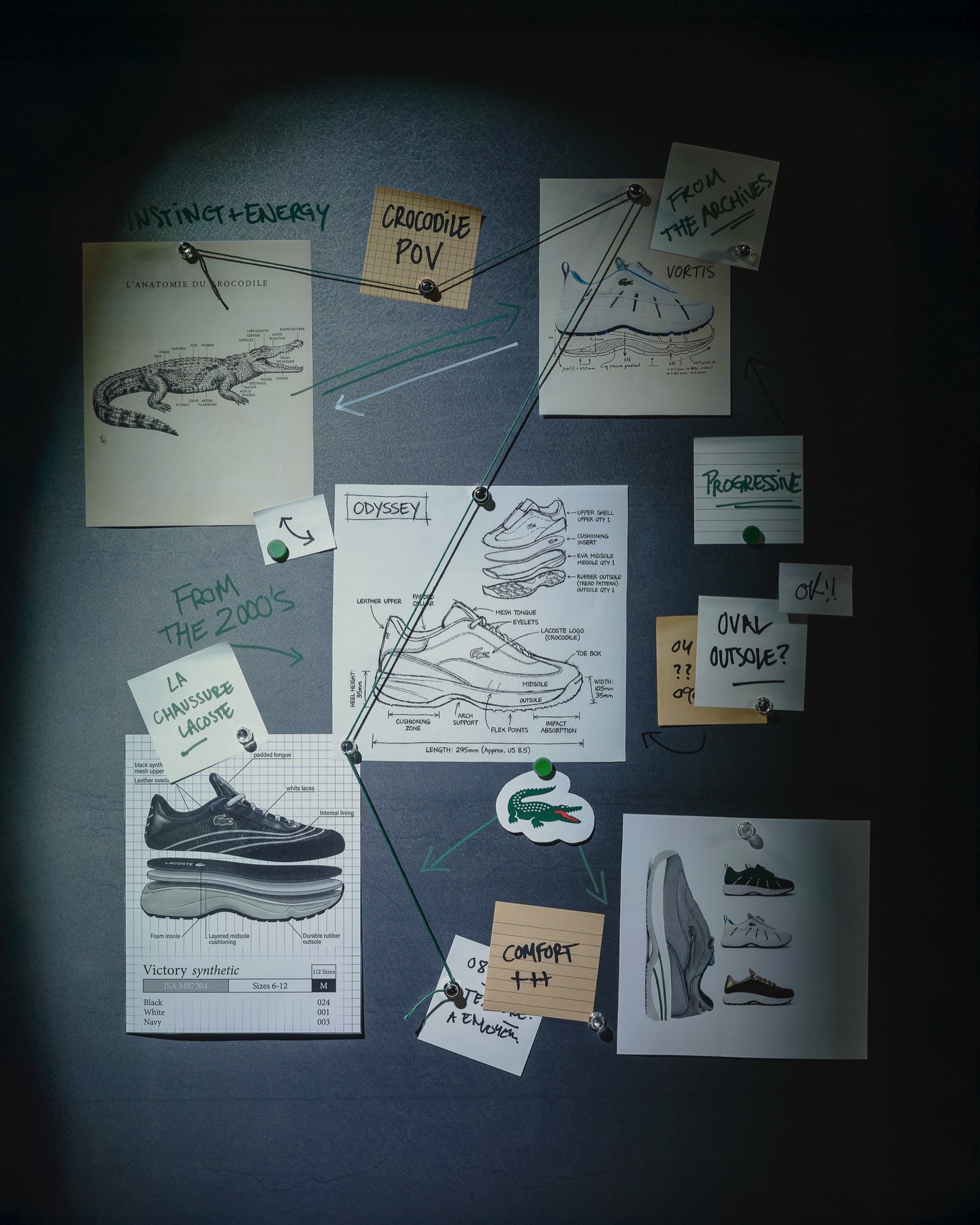 - Le design s’appuie sur des lignes sculptées et une semelle dynamique pour traduire visuellement le mouvement du crocodile et donner à la chaussure une impression de vitesse et de fluidité.