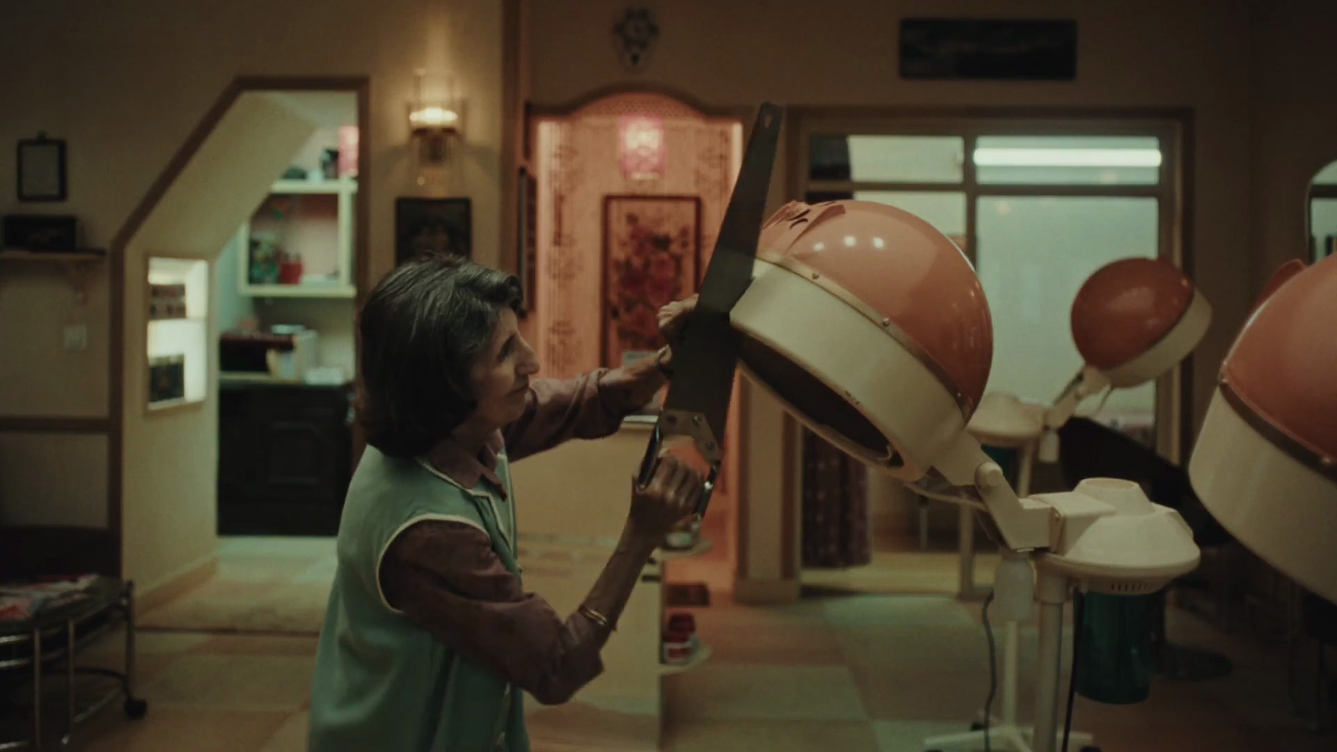 Dans ce nouvel opus, la marque va encore plus loin dans l’exagération : on y voit des personnages percer et découper des objets du quotidien (toit de voiture, plafond, casque, chapeau de cow-boy, parapluie) avec un calme presque dérangeant.