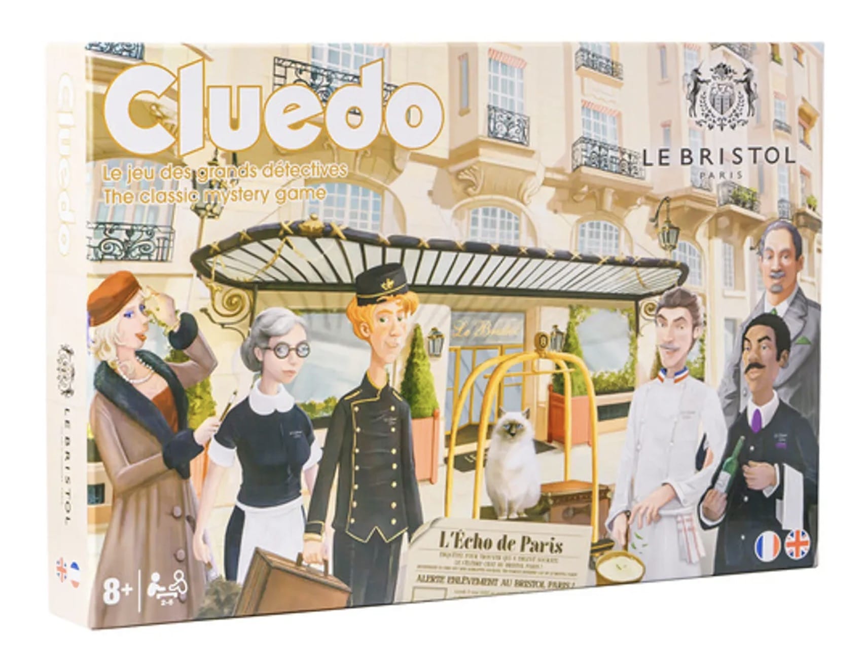 Conçu en partenariat avec les équipes du palace, le Cluedo Le Bristol transporte les joueurs dans les lieux emblématiques de l’hôtel : le Café Antonia, la suite Paris, les cuisines de l’Épicure ou encore la cour intérieure. Chaque lancer de dé devient une promenade entre boiseries, fleurs fraîches et histoires cachées. Les suspects, inspirés des métiers du palace, incarnent tout le raffinement d’une maison où chaque détail compte.