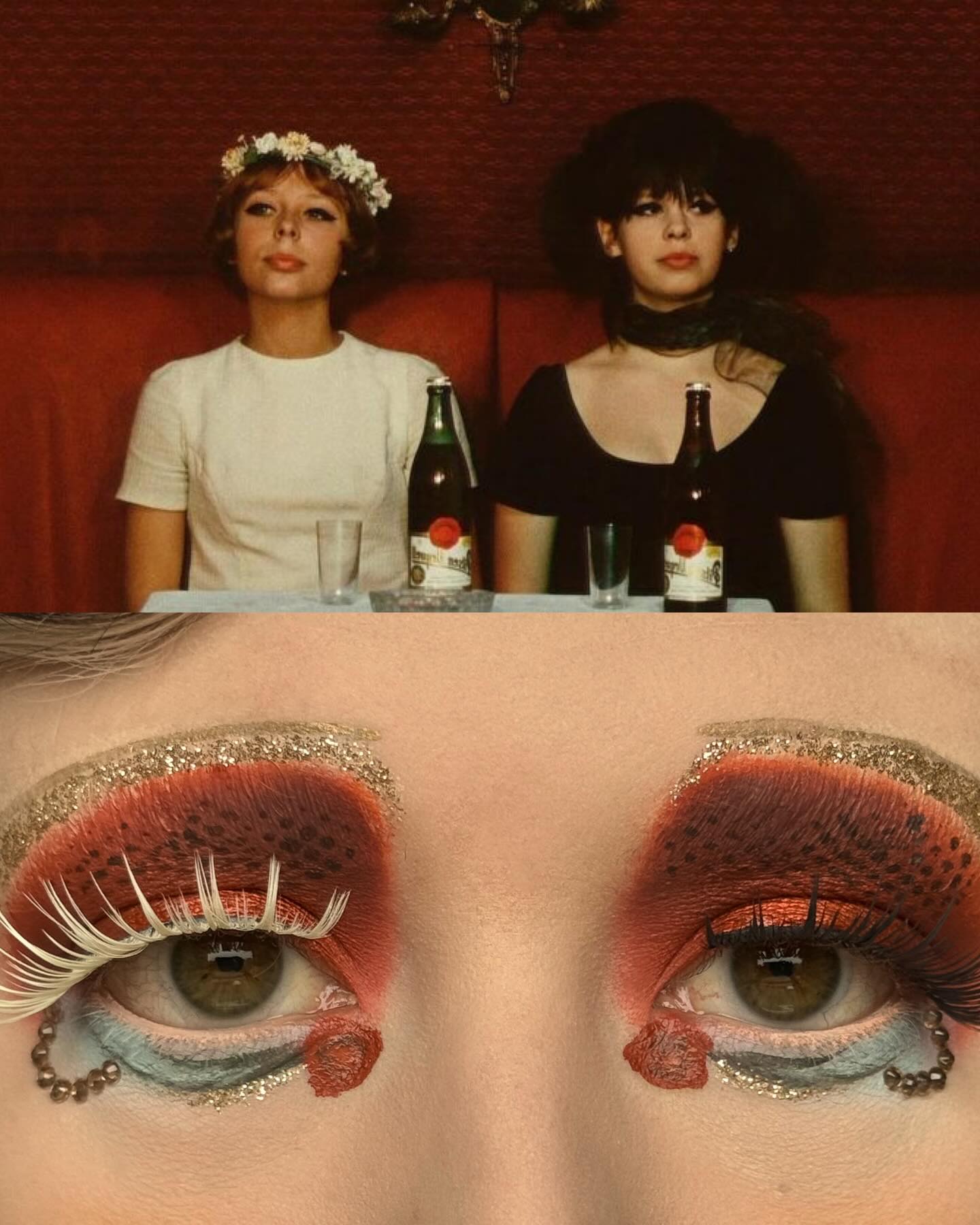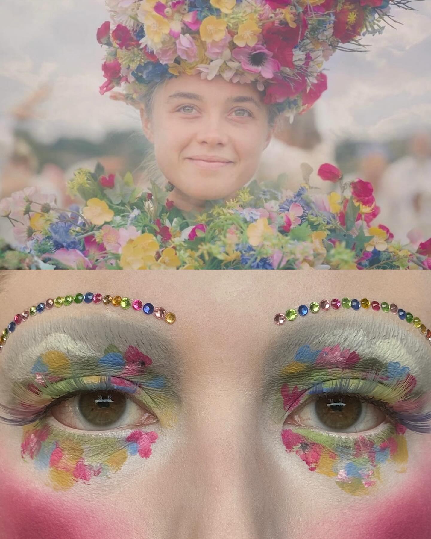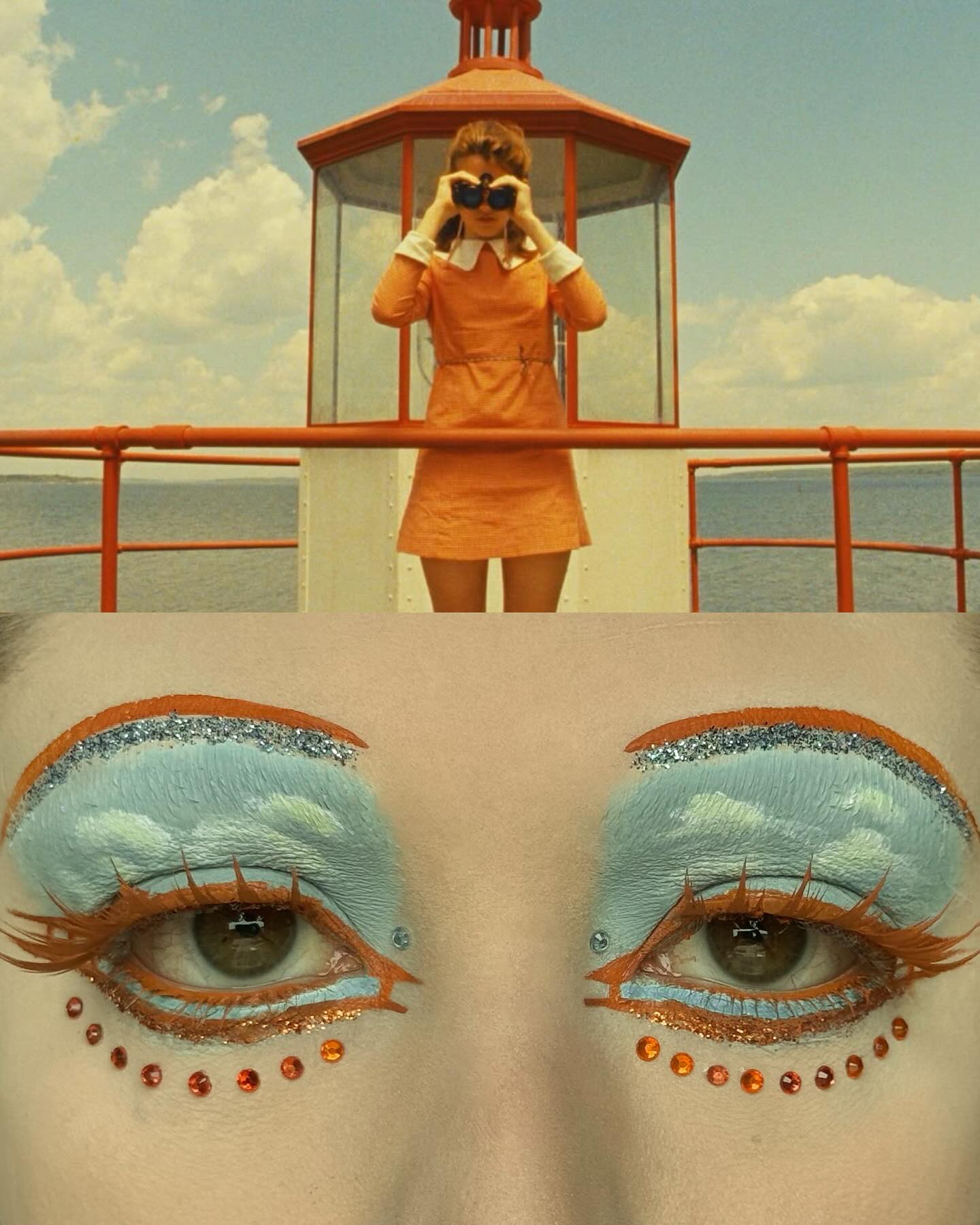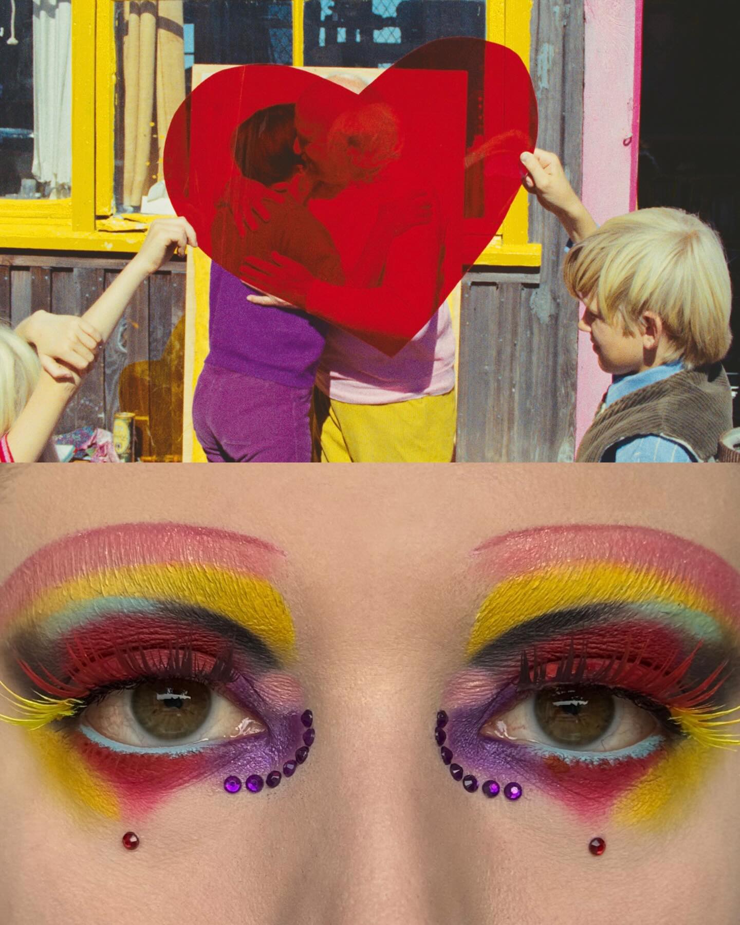 Ici, le maquillage ne cherche pas à embellir. Il raconte. Chaque regard devient une histoire autonome, oscillant entre douceur, trouble et intensité. On retrouve aussi bien la poésie décalée de Moonrise Kingdom que la puissance solaire et dérangeante de Midsommar, ou encore l’élégance graphique de The Umbrellas of Cherbourg.