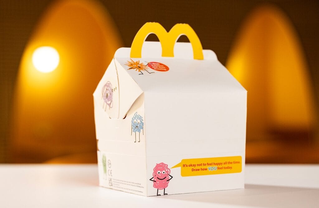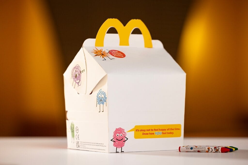 Disponible dans plus de 1 400 restaurants au Royaume-Uni et en Irlande du 5 au 18 novembre, cette opération fait suite à la campagne primée de McDonald’s qui, l’an dernier, avait retiré le célèbre sourire du Happy Meal pour amorcer la discussion autour des sentiments des enfants. Cette nouvelle version pousse encore plus loin le concept en faisant du packaging un véritable support d’expression créative. Selon une étude menée par la marque, 73 % des enfants trouvent plus facile de parler de ce qu’ils ressentent en dessinant, tandis que 88 % des parents estiment que l’activité artistique aide à engager ces échanges.