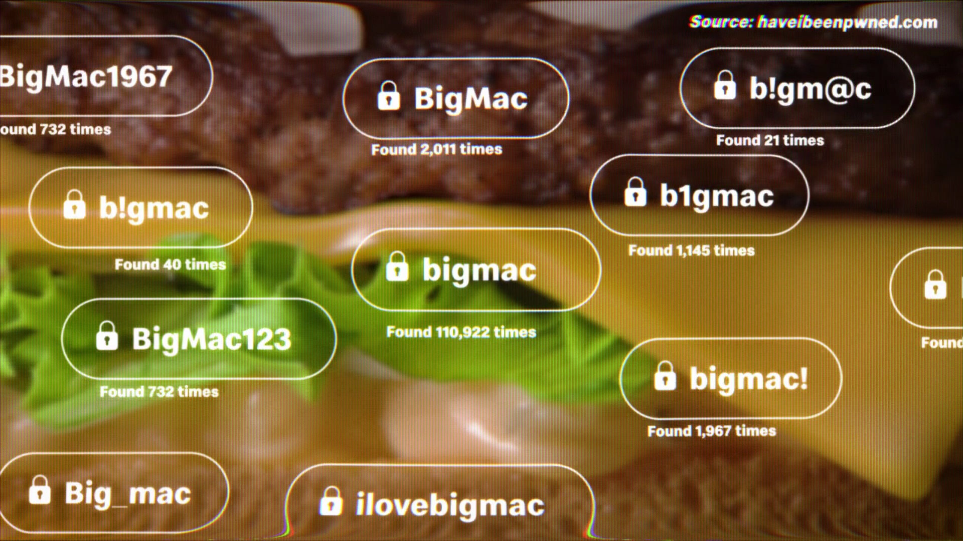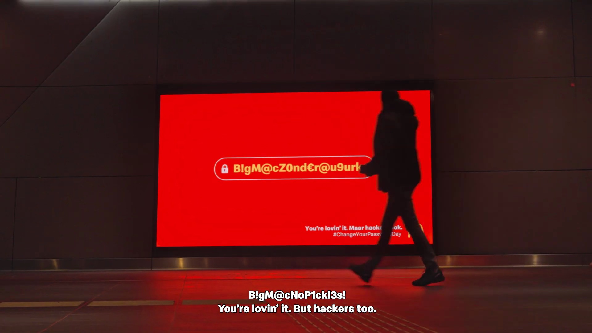 - En affichage digital, la marque affiche des mots de passe issus de fuites comme « bigmac », utilisé plus de 110 000 fois, ou « happymeal ».