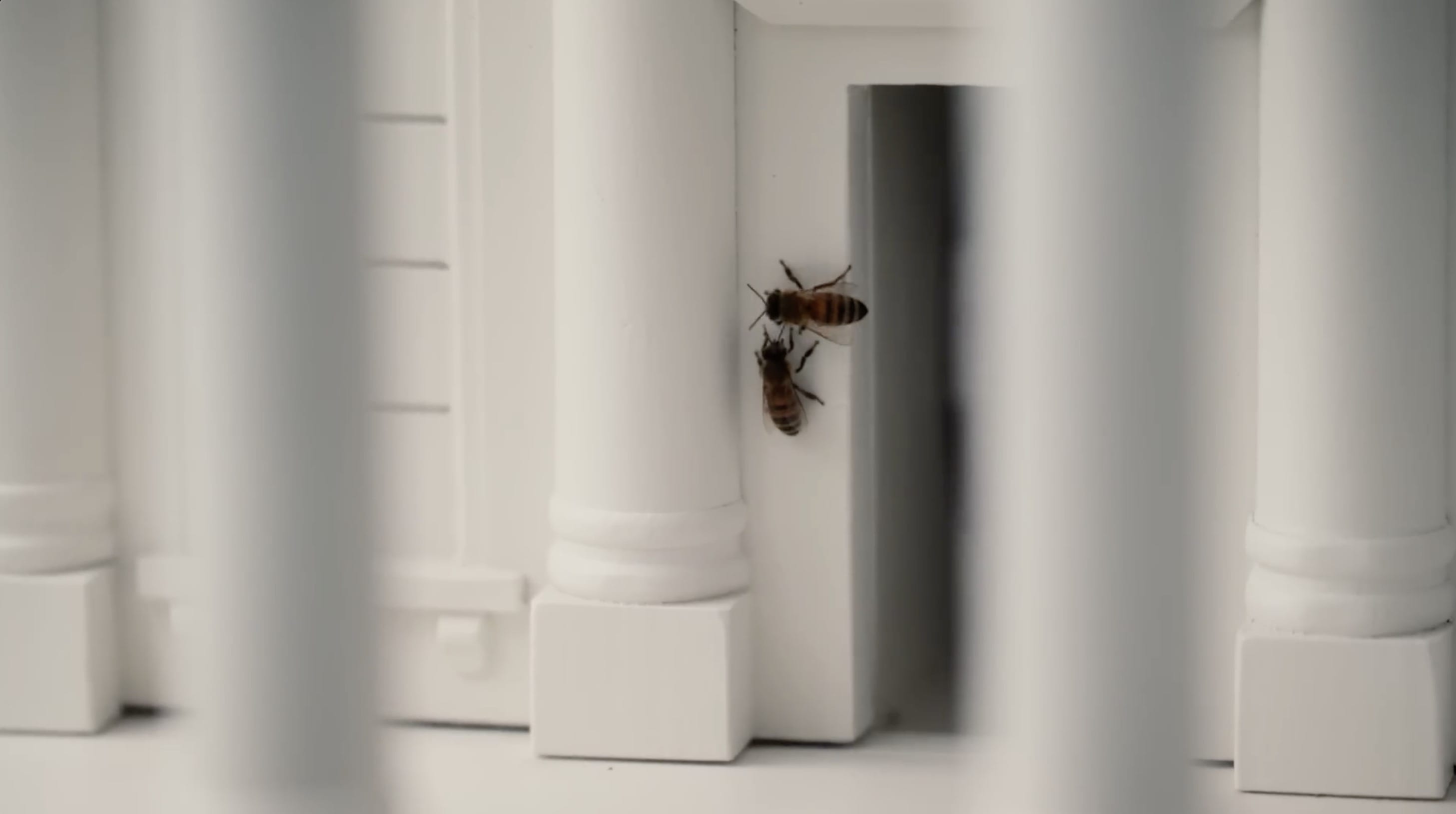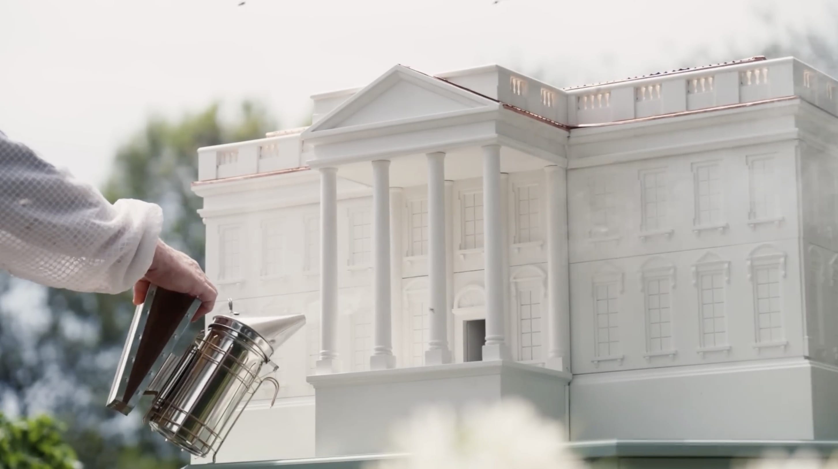 L’idée créative tient dans la miniaturisation. Réduire la Maison Blanche à l’échelle d’une ruche, c’est transformer un bâtiment institutionnel en objet narratif, presque jouet. Le geste rappelle ces maquettes architecturales qu’on offre aux dignitaires, sauf que celle-ci abrite 35 000 ouvrières et produit réellement du miel.