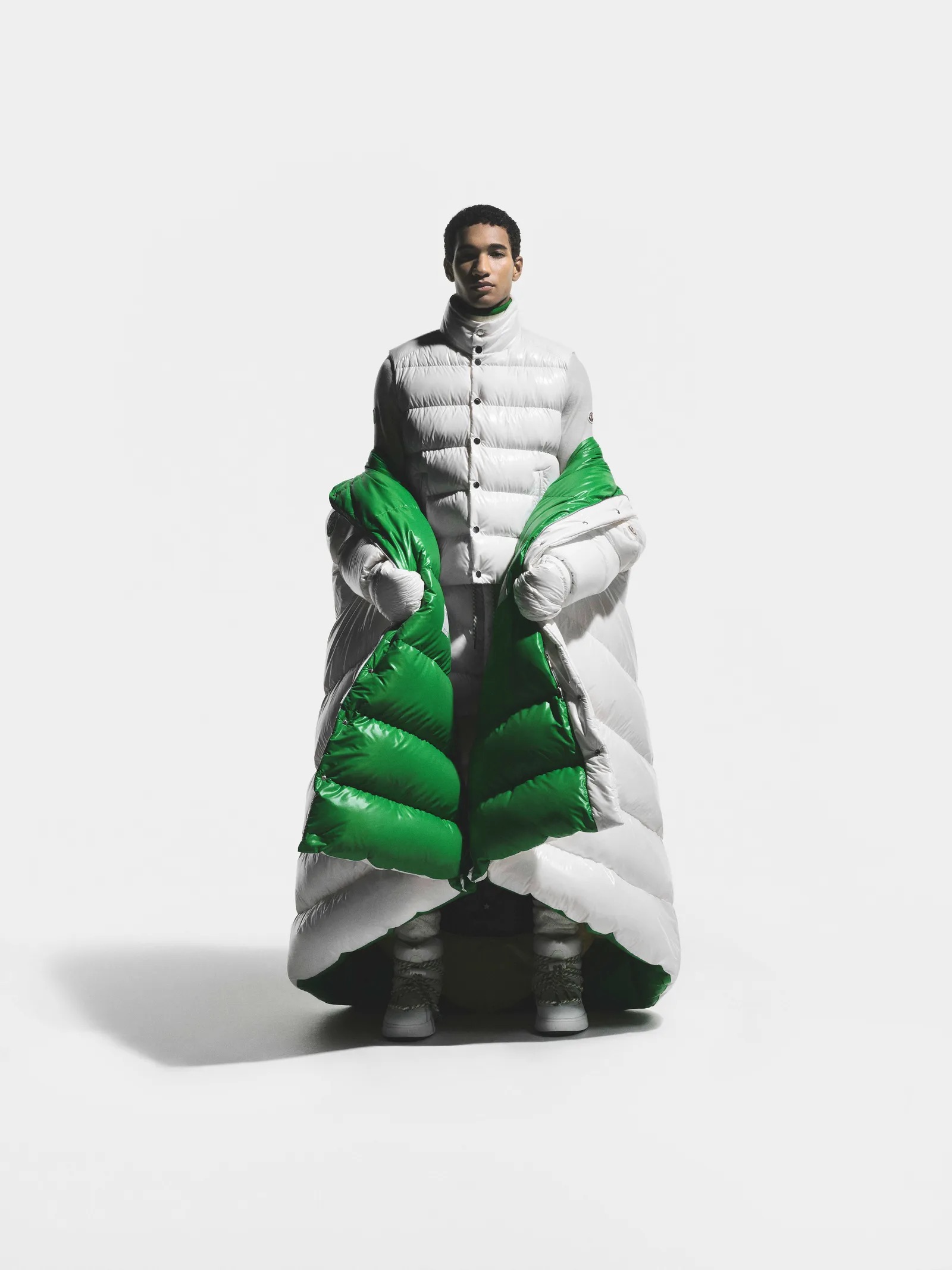 - La collection revisite l’héritage alpin de Moncler (références Karakorum, matières techniques recyclées) pour affirmer une présence sobre, cinématographique et puissante.