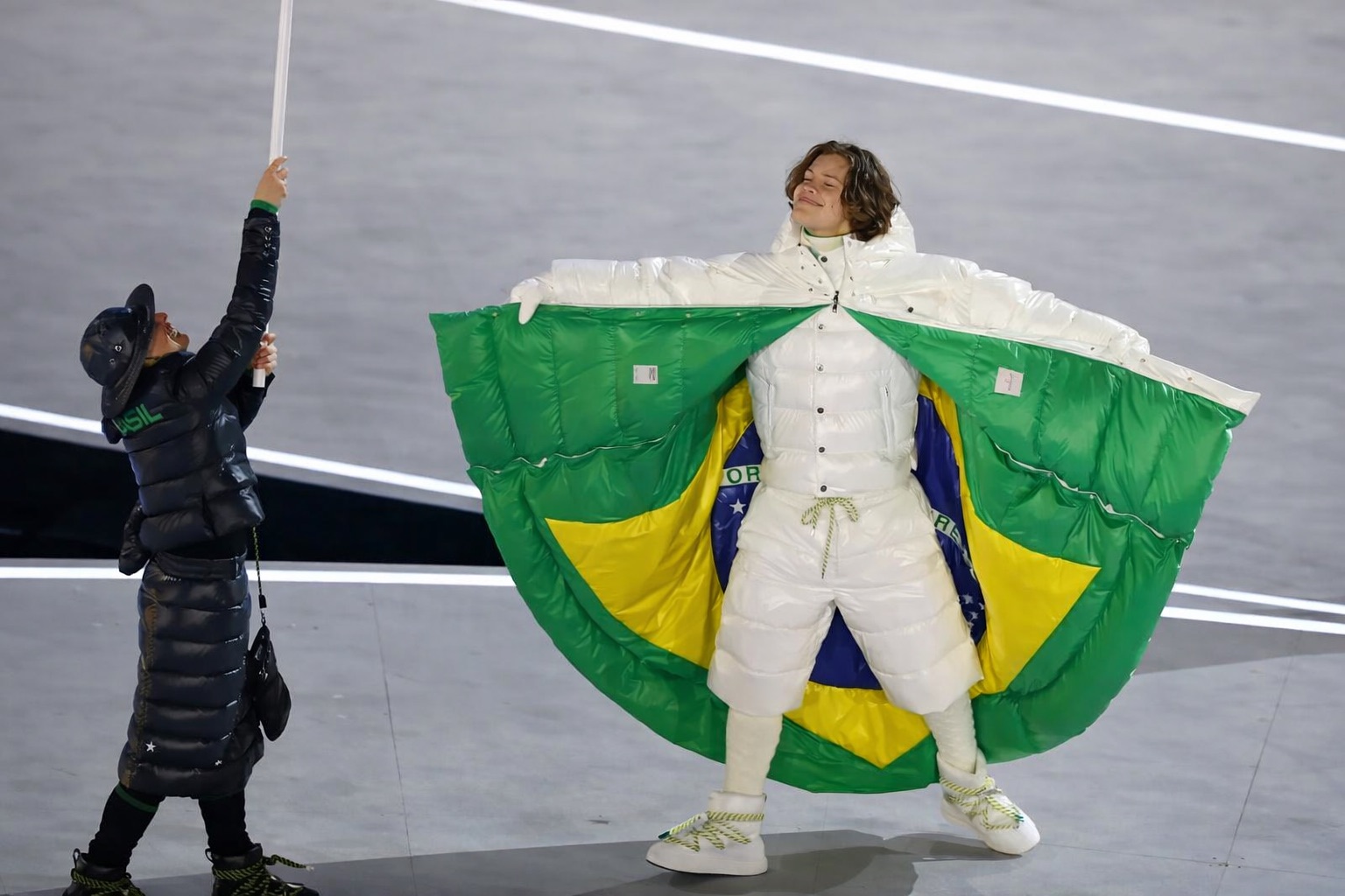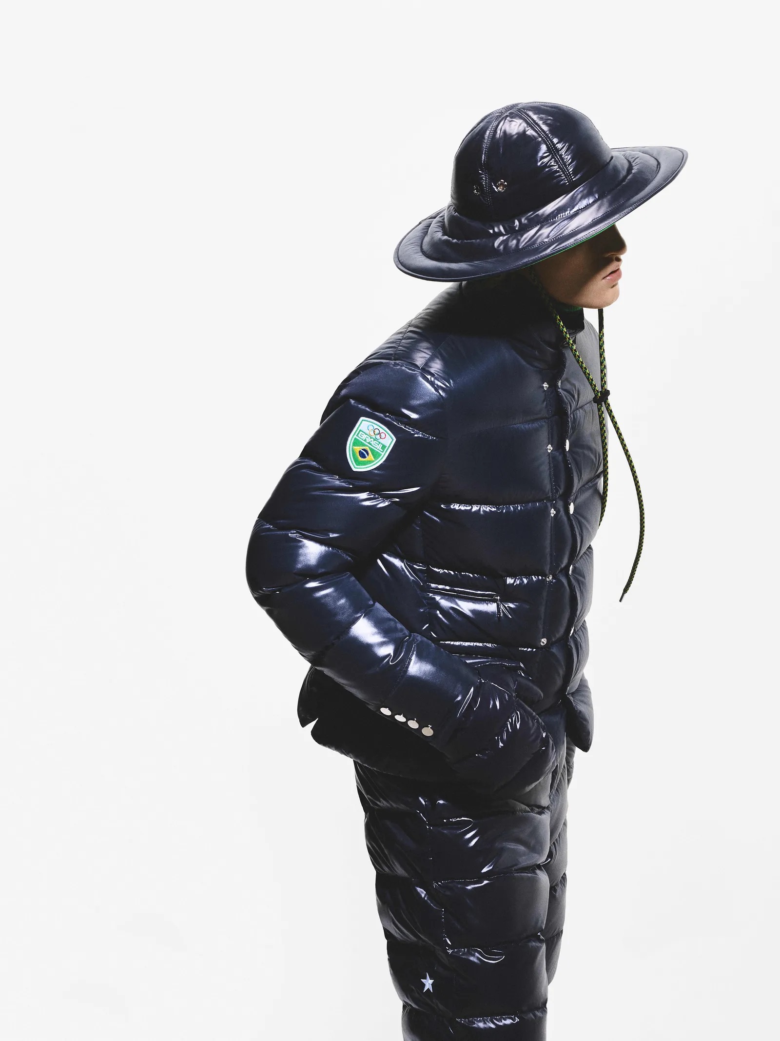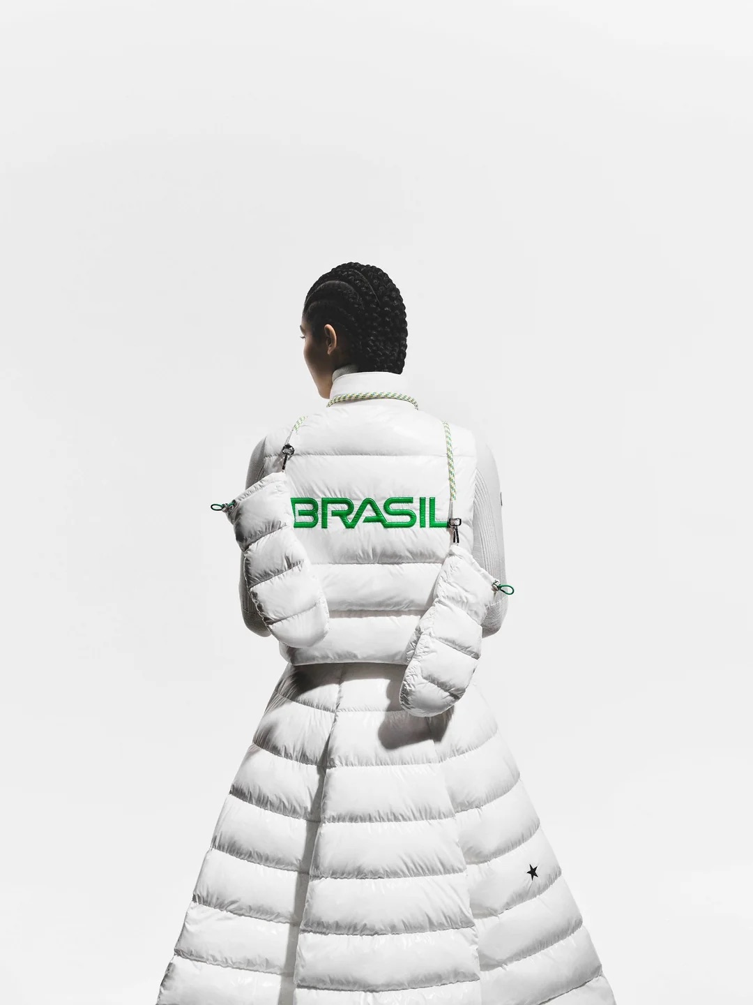 Ici, pas de folklore tropical ni d’explosion de couleurs. Les athlètes brésiliens défileront en blanc intégral ou en bleu, dans des manteaux longs et fluides inspirés de l’ADN alpin de Moncler. Des teintes maîtrisées, presque glaciales, pensées comme une prise de position.