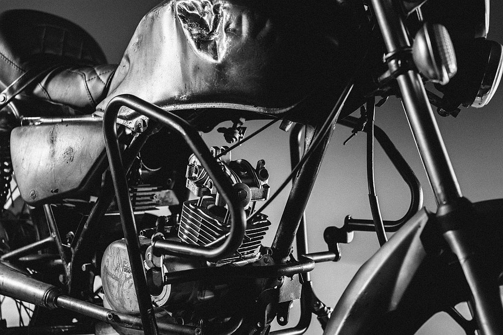Chaque élément de cette moto raconte une histoire qui s’est arrêtée trop tôt. Un guidon, un réservoir, un cadre, tous proviennent de véhicules accidentés dans des collisions mortelles. Ensemble, ils forment une moto unique, impossible à ignorer, conçue comme un manifeste visuel.