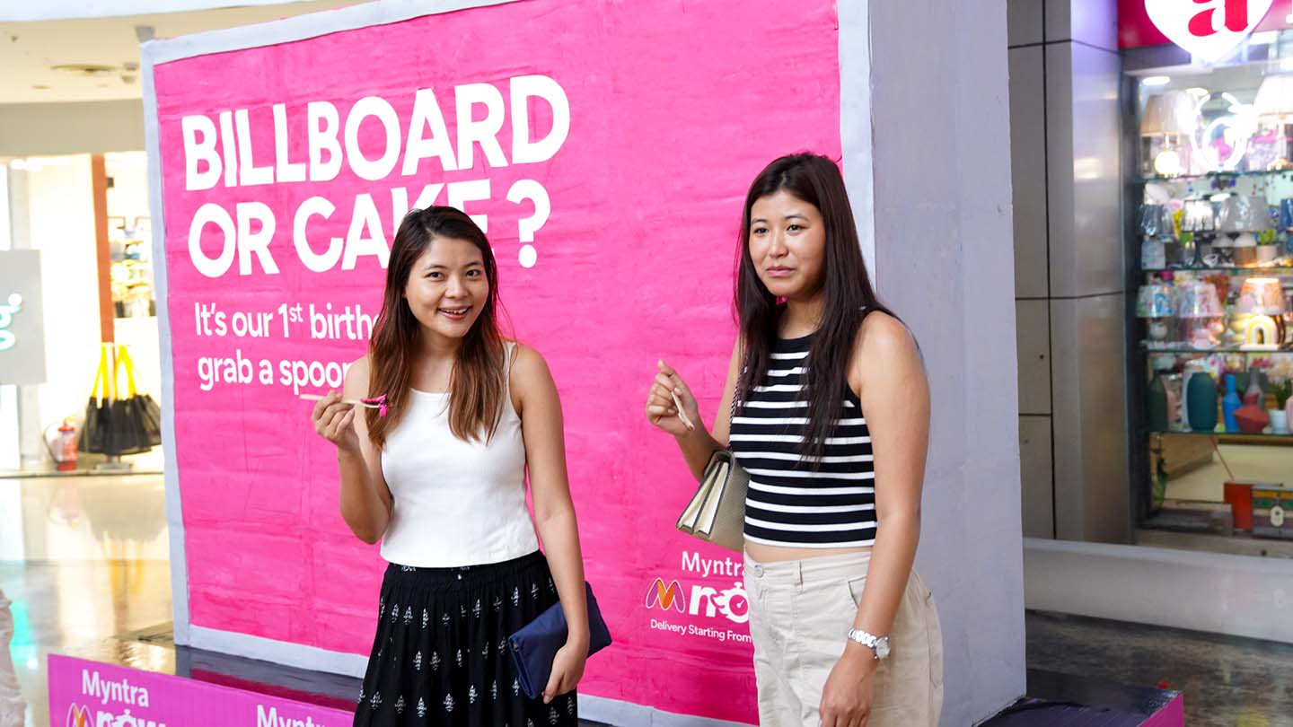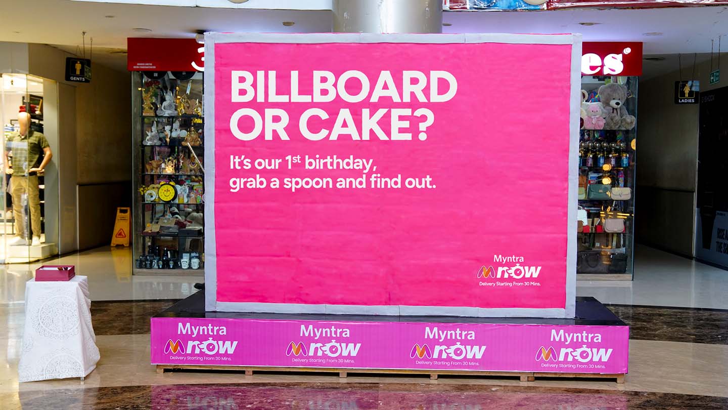- Pour célébrer l’anniversaire de son service M-Now, Myntra a dévoilé un panneau publicitaire entièrement comestible, un gâteau grandeur nature installé dans un mall de Mumbai, une idée folle qui détourne la trend virale “Fake or Cake”.