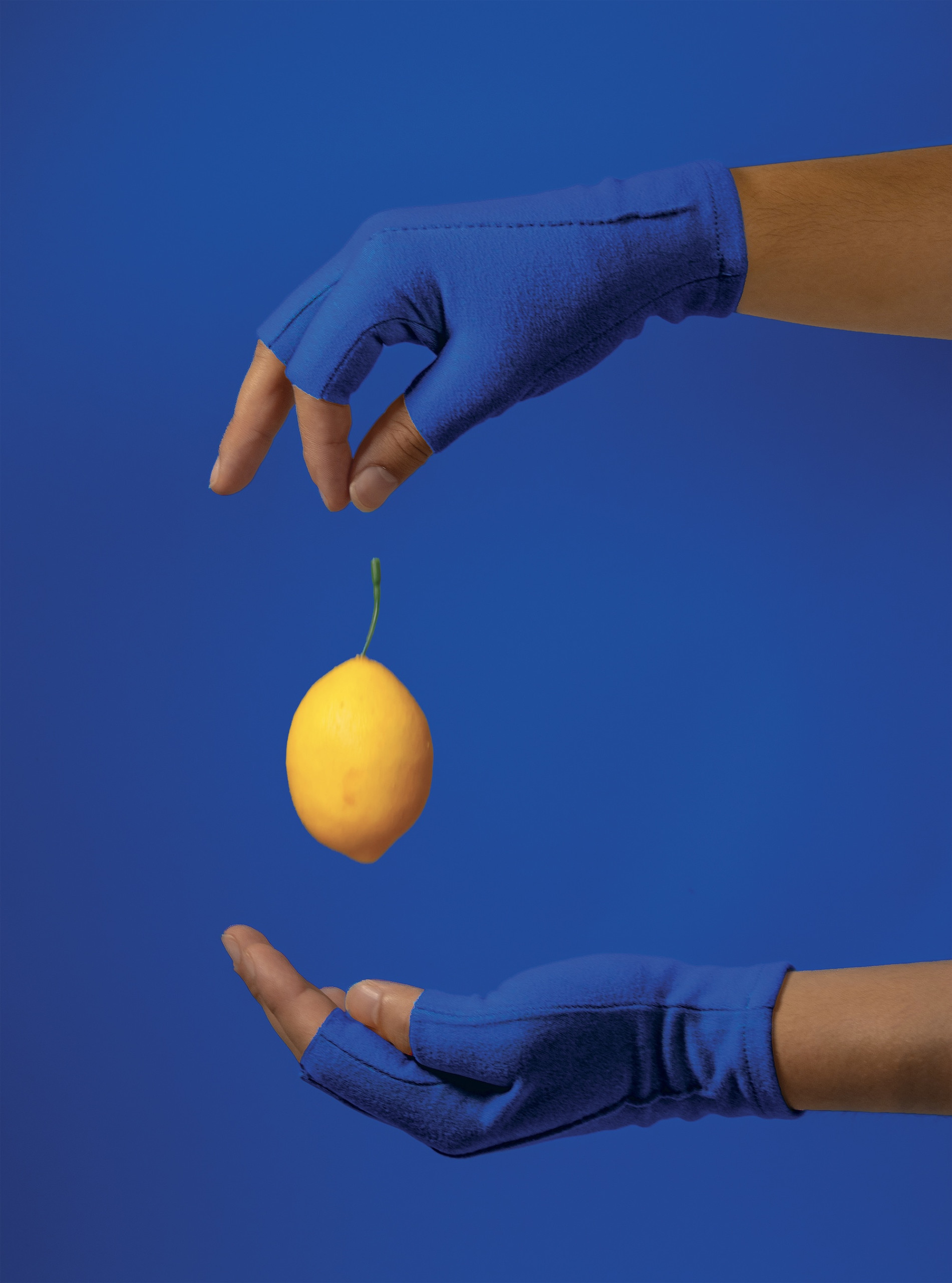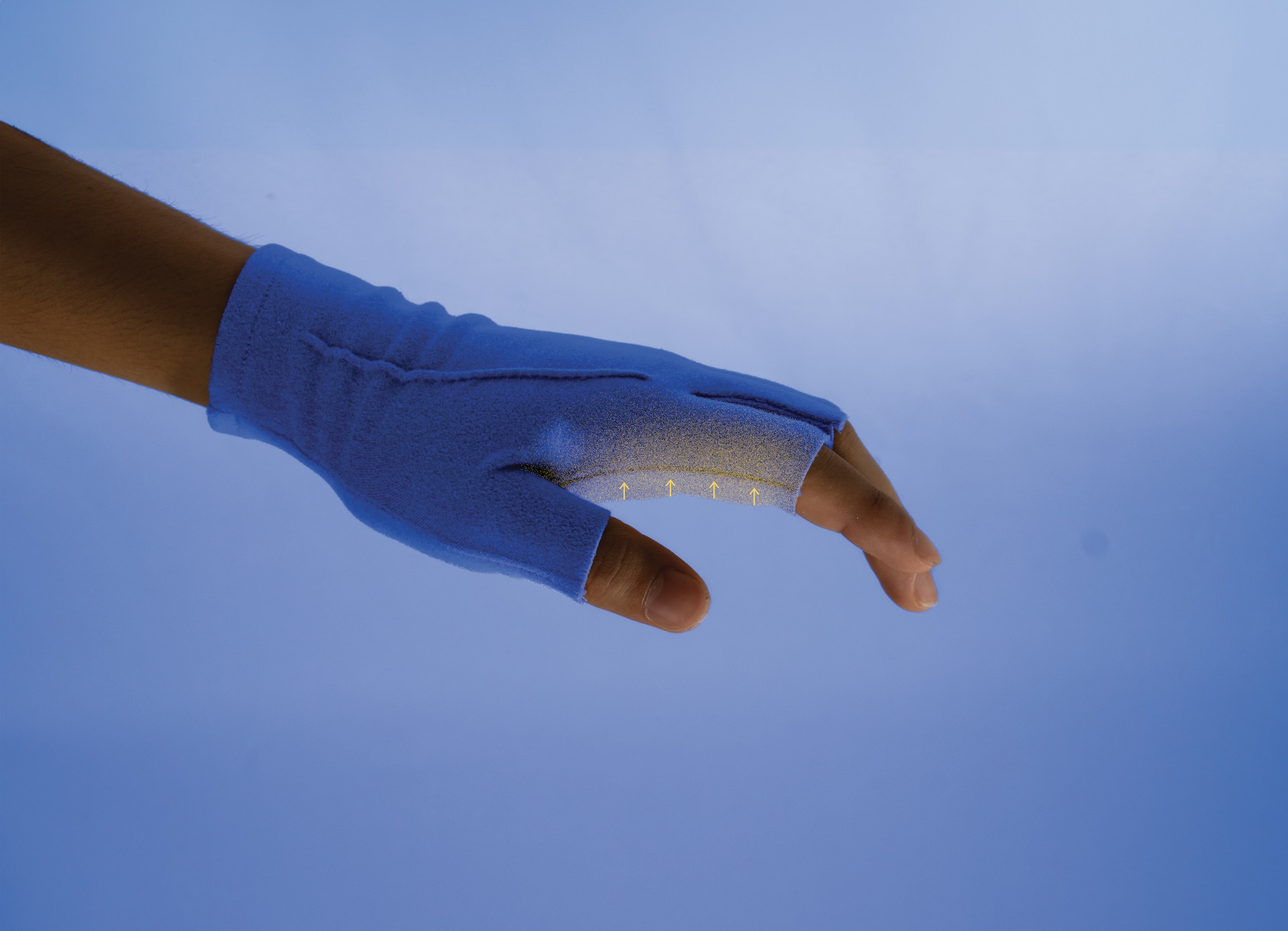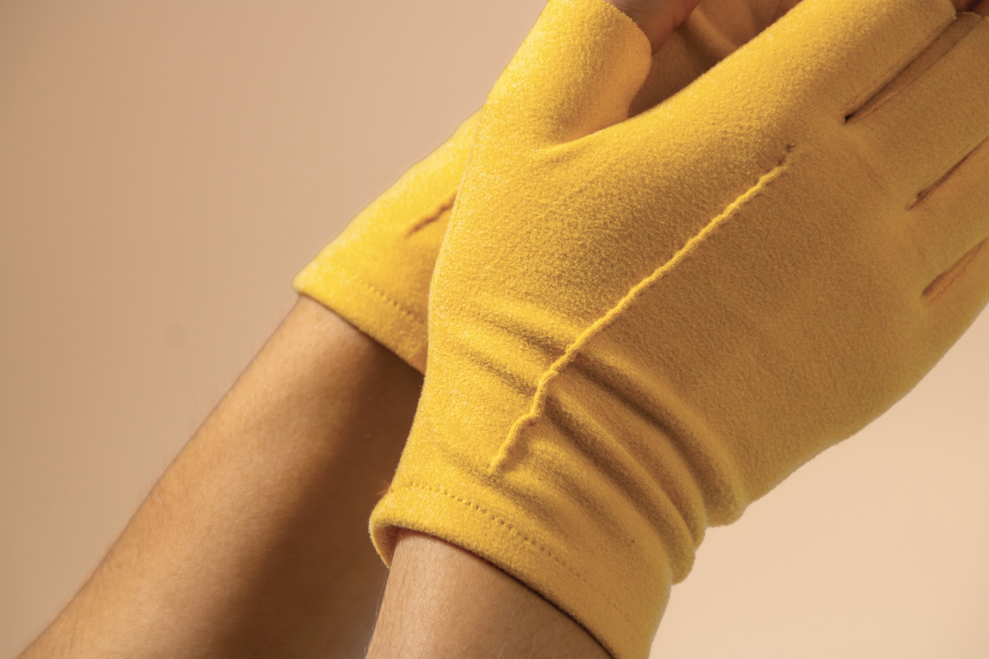 • En détournant une paire de mitaines, le projet transforme le textile en rituel de soin passif, diffusant ses actifs au contact de la peau, sans écran, sans application et sans contrainte.