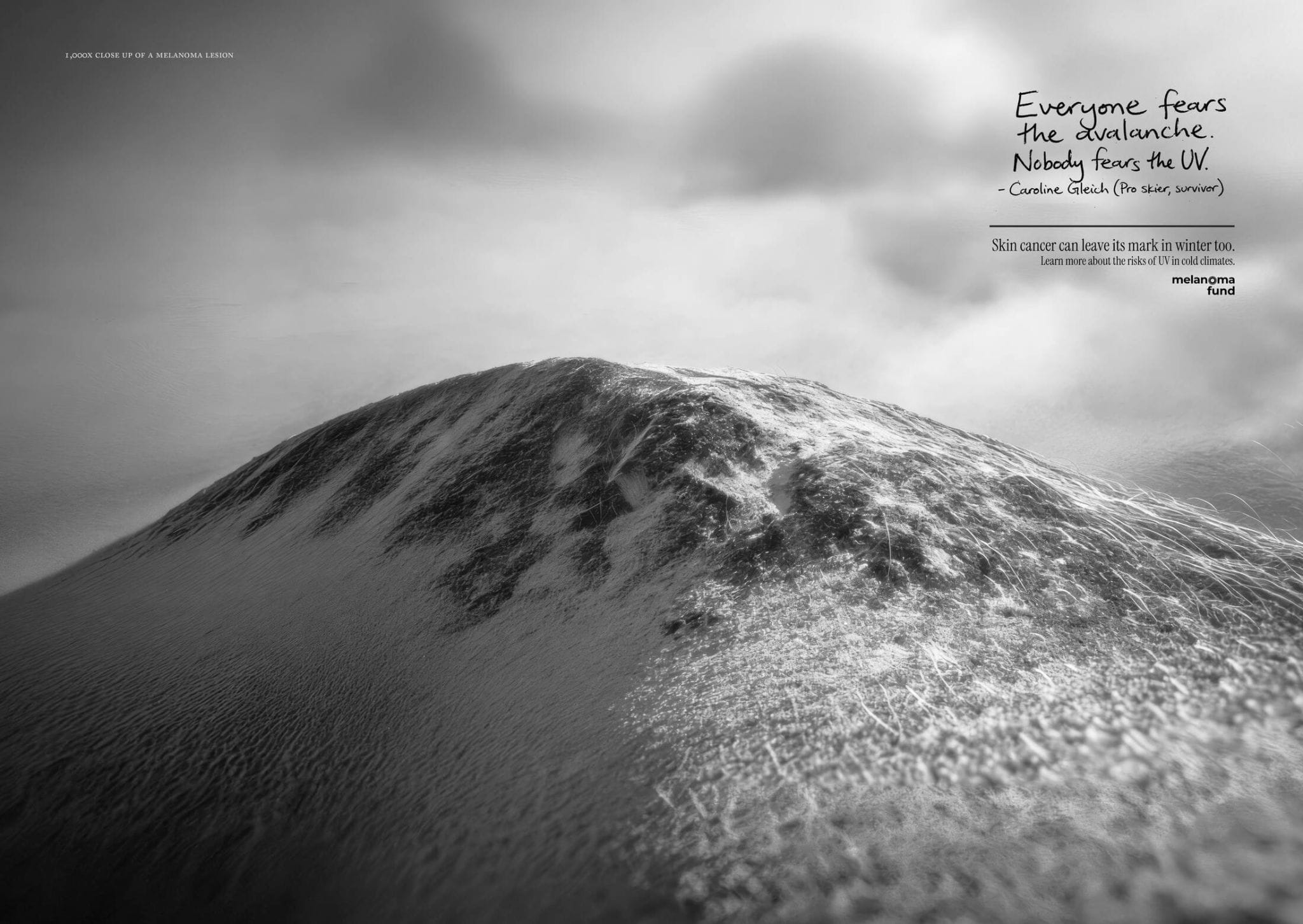 - Avec “Peak Exposure”, le Melanoma Fund détourne des paysages de montagne pour révéler en réalité des mélanomes, créant un choc visuel immédiat qui rend visible un danger souvent ignoré.