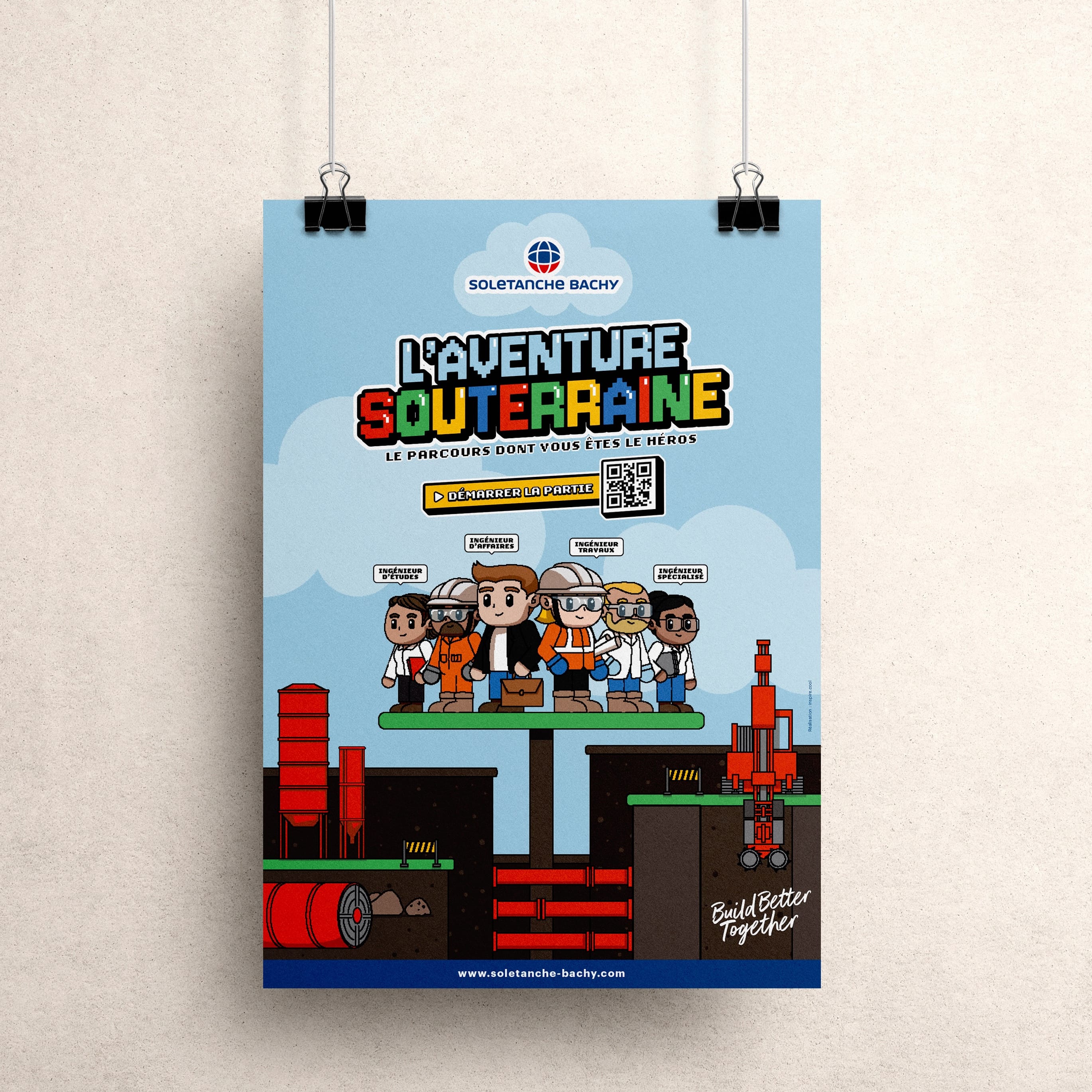 Pour répondre à ce manque de clarté, l’entreprise, leader mondial des fondations et technologies du sol, a imaginé un format ludique, concret et fun : « L’Aventure Souterraine, le parcours dont vous êtes le héros ». Une immersion inspirée du rétro gaming qui propulse les futurs ingénieurs directement au cœur de ses métiers.