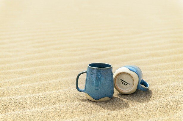 - À Tottori, Starbucks collabore avec un artisan local pour créer des tasses en céramique inspirées du paysage régional, entre dunes de sable, mer du Japon et formes des poires locales.