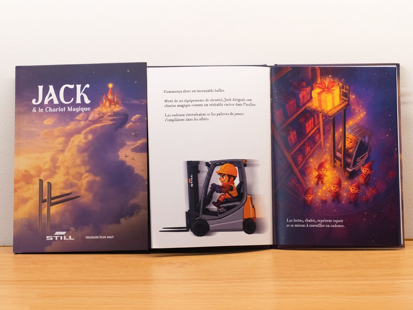 - Pour réinventer ses vœux, STILL et l’agence Creapills créent un conte de Noël imprimé, Jack et le chariot magique, un livre distribué à 1 000 exemplaires qui détourne un classique jeunesse pour introduire la magie au cœur de la logistique.