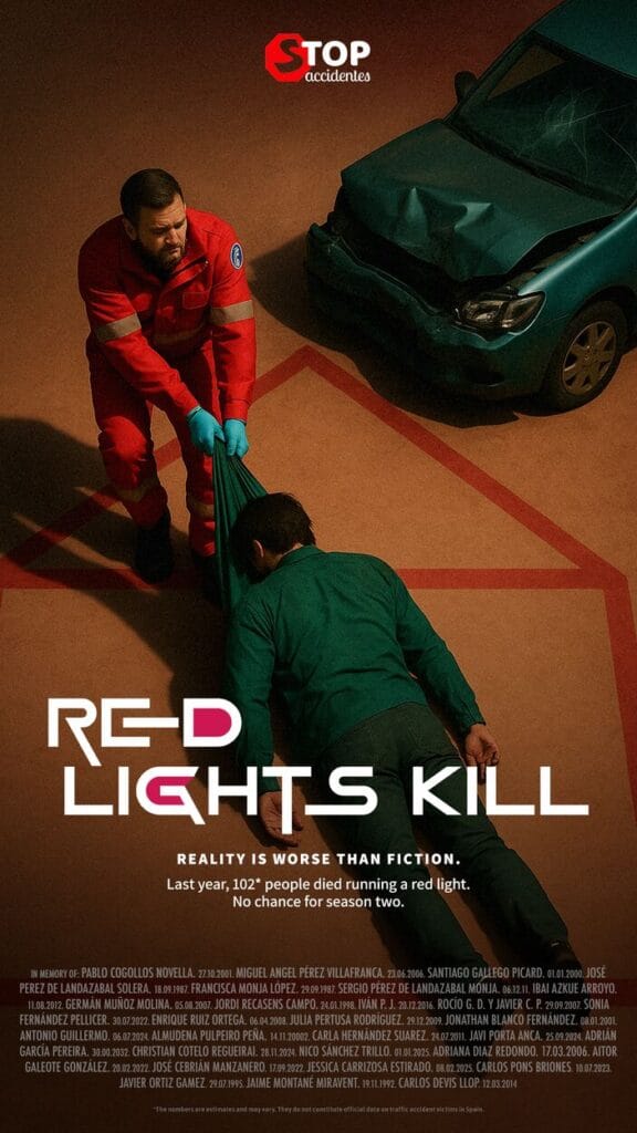 StopAccidentes s’attaque frontalement à ce paradoxe. En reprenant les codes visuels des séries les plus regardées, l’organisation force un “double regard” : on pense voir une affiche de thriller… puis la scène d’accident frappe. Ce choc visuel devient un levier d’empathie, une façon de réhumaniser des victimes trop souvent réduites à des statistiques.