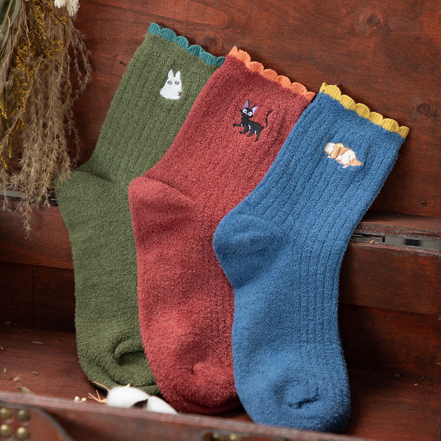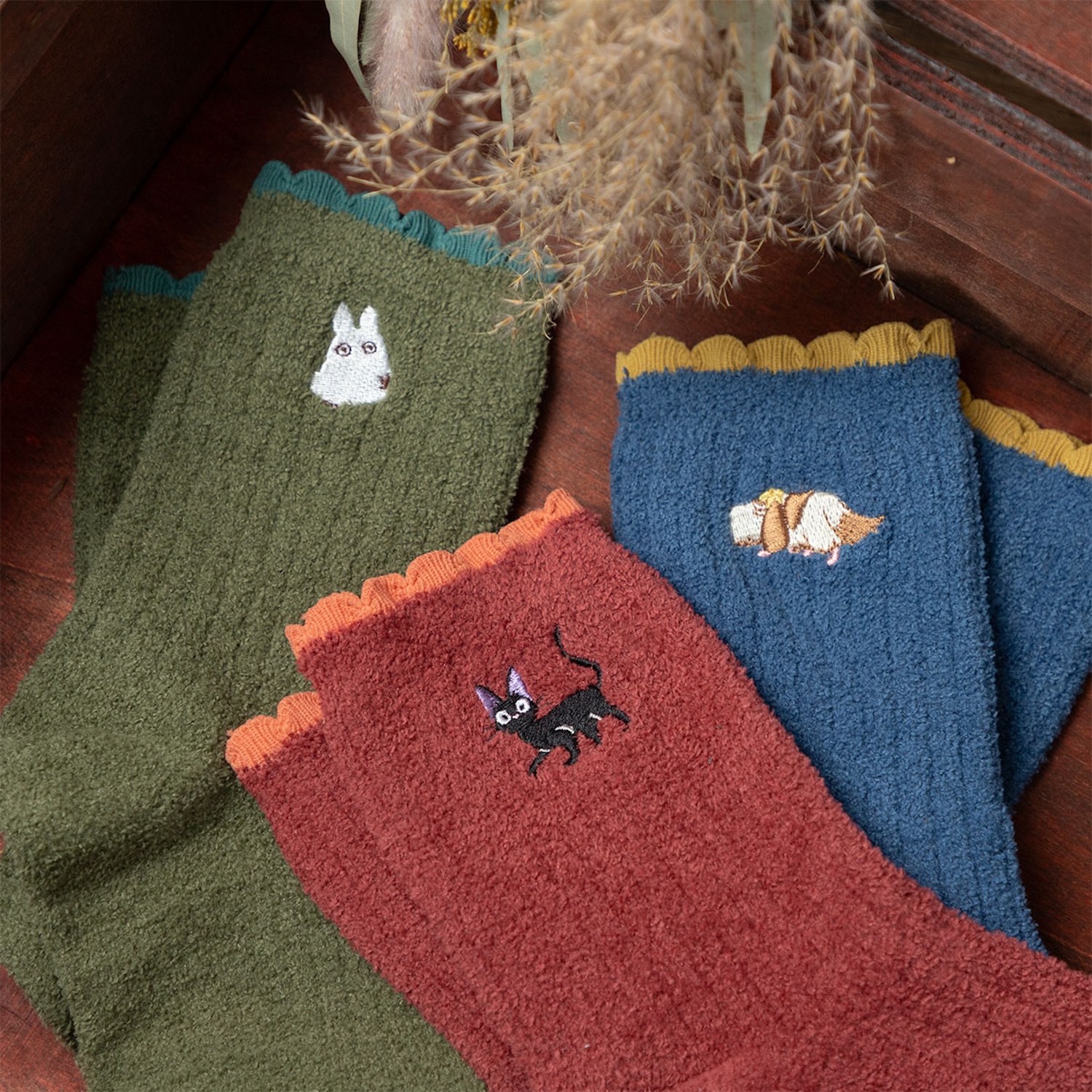 Pensée comme une véritable invitation au cocooning, cette collection célèbre le confort et la nostalgie. Douces, épaisses et soigneusement brodées, ces chaussettes rappellent le soin artisanal et la délicatesse qui caractérisent l’esthétique Ghibli. Loin de simples accessoires, elles se transforment en petits objets de réconfort pour les fans, parfaits pour accompagner les longues soirées d’automne.