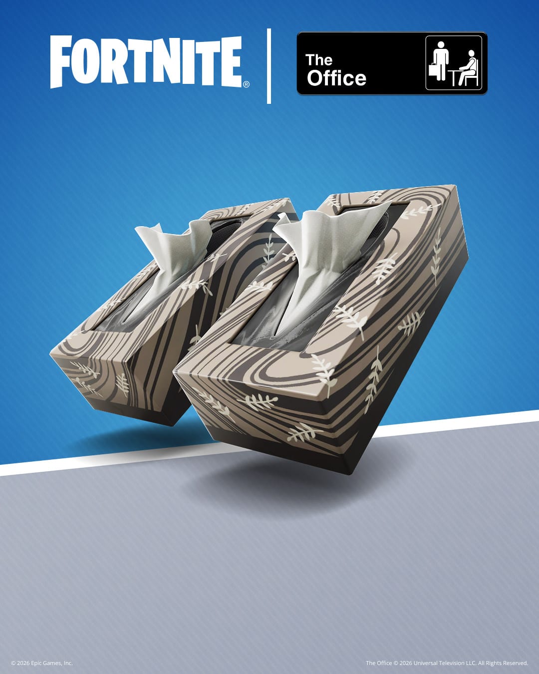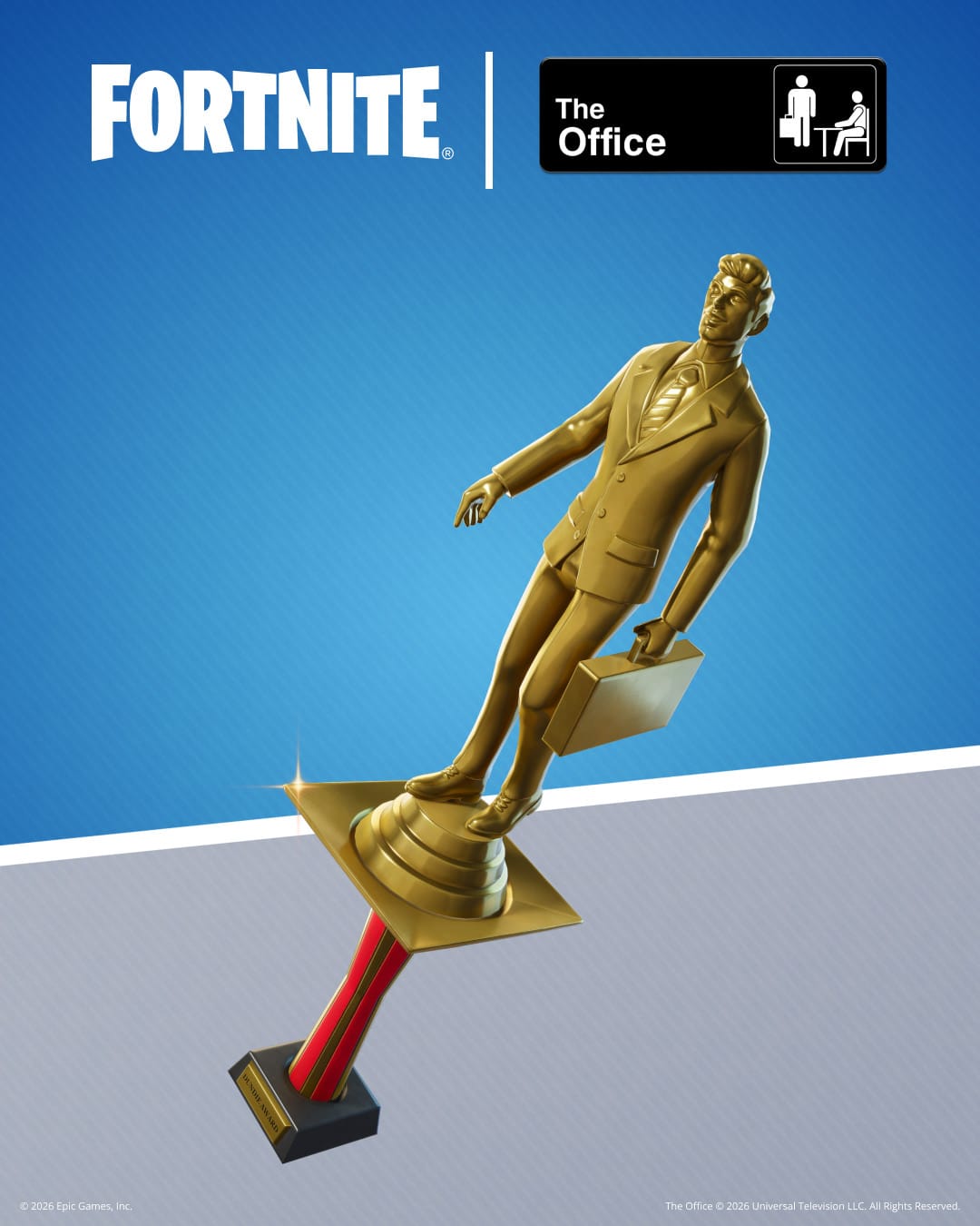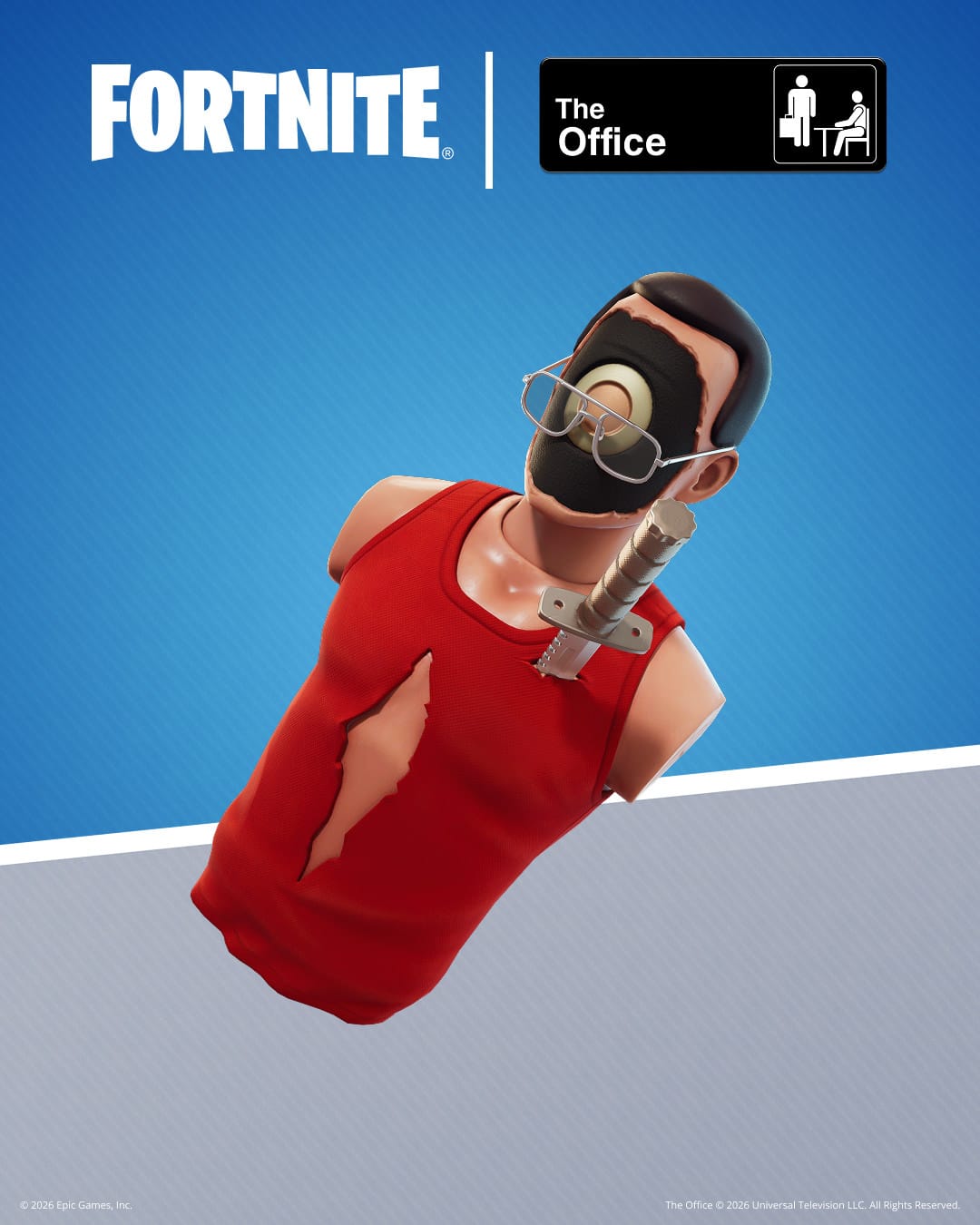 Au-delà des skins, Epic Games a enrichi la collaboration avec une série d’emotes et d’accessoires directement issus de l’univers de The Office. La plus marquante reste sans doute l’emote « The Scarn », qui permet de reproduire la danse improbable imaginée par Michael dans Threat Level Midnight.