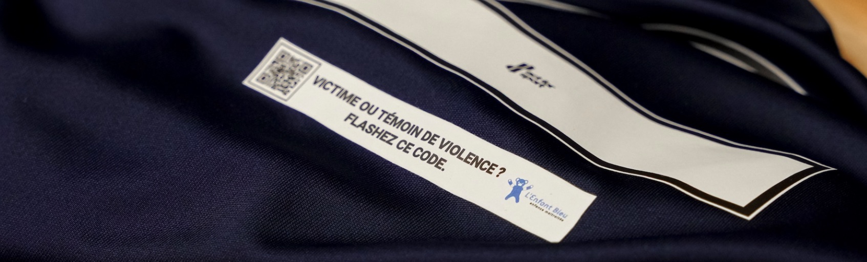 Imaginé comme un symbole de protection silencieuse, le QR code a été intégré directement sous le numéro de chaque maillot. En le scannant, l’enfant accède instantanément au site de L’Enfant Bleu pour signaler une urgence, poser une question, ou parler à un professionnel. Pas de détour, pas d’obstacle. Un geste aussi banal que de regarder son propre dos devient un accès à la sécurité.