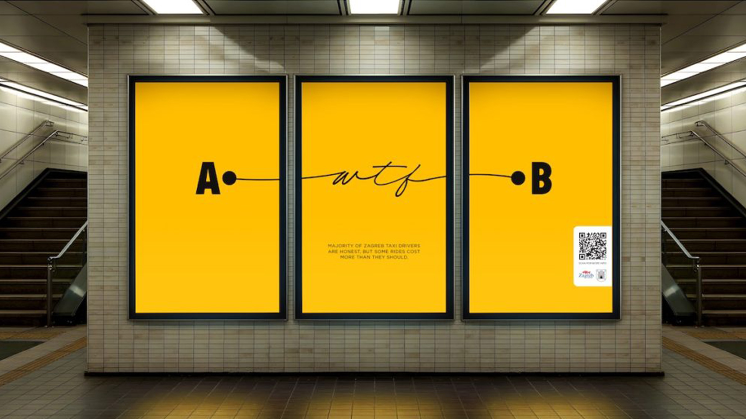 - Zagreb répond à la montée des taxis arnaqueurs avec des affiches où les tracés de trajets forment des mots comme wtf, omg ou scam, illustrant les détours abusifs que vivent de nombreux touristes.